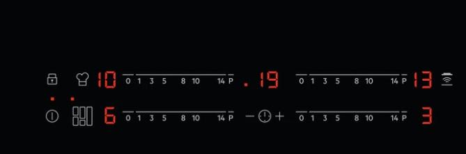 -: Funkcija PowerSlide - Funkcija razdeli indukcijsko kuhalno površino na tri področja z različnimi stopnjami kuhanja. Kuhalna plošča zazna položaj posode in nastavi stopnjo kuhanja glede na položaj. Posodo lahko postavite spredaj, na sredino ali zadaj. Če posodo postavite spredaj, je zagotovljena najvišja stopnja kuhanja. Za znižanje stopnje premaknite posodo na sredino ali nazaj.
