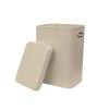 Bež košara za perilo iz nepremočljivega pvc materiala s trdnim ogrodjem in praktičnim pokrovom.
