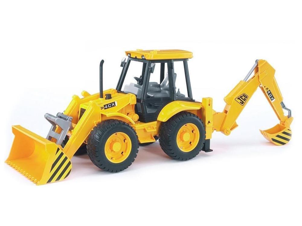 Bruder Bager JCB 4CX 02428 – Bager ima popolnoma funkcionalno sprednjo kopalno lopato, ki jo je mogoče zakleniti v najvišjem položaju. Sprednjo lopato je mogoče nagniti navzdol, voznikov sedež pa je mogoče zasukati za 360°. Poleg tega je premičen tudi volan. Tudi zadnja roka bagra je popolnoma funkcionalna in jo je mogoče premikati vodoravno, zasukati za 180° in zakleniti v položaju. Dve raztegljivi opori zagotavljata varen oprijem bagra, sliko pa dopolnjujejo še pnevmatike s tekalno plastjo.