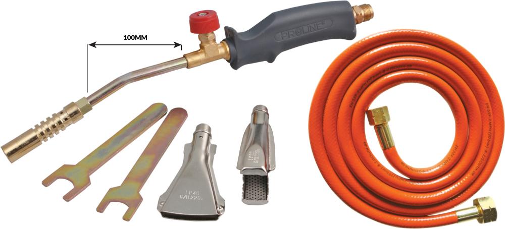 Gorilnik s tremi nastavki, 17,22,40mmin ter 2m cev. Prenese temperaturo 1850C. Oblike nastavkov: - točkovni - ploski - klasični Gorilnik je narejen po EU standardu EN ISO 9012