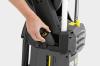 Praktičen, mobilen, vsestranski: visokotlačni čistilnik s hladno vodo HD 5/17 CX Plus za delo v vodoravnem in navpičnem položaju. S predalom za dodatke, medeninasto cilindrično glavo in avtomatsko razbremenitvijo tlaka.