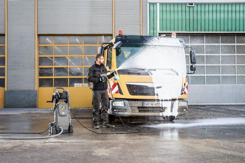 Mobilni visokotlačni čistilnik HD 6/15 MX Plus z izmeničnim tokom s krmiljenjem tlačnega stikala, integriranim vozičkom za cev za priročno rokovanje z visokotlačno cevjo in številnimi možnostmi za shranjevanje čistilnika ter shranjevanje dodatne opreme. Novo razvita robustna 3-batna aksialna črpalka z medeninasto glavo valja zagotavlja dolgo življenjsko dobo. Čistilnik je dobro vodljiv, enostaven za shranjevanje, zmanjšuje potrebe po energiji in hkrati izboljšuje učinkovitost čiščenja za približno 20%. Visokotlačna pištola EASY!Force z odbojno silo visokotlačnega curka zmanjša zadrževalno silo na nič, hitro sprostitvena sklopka EASY!Lock pa omogoča petkrat hitrejše rokovanje kot običajni vijačni priključki. Tako kljub robustnosti in dolgi življenjski dobi zagotovlja, da boste delali brez utrujenosti in prihranili čas. Funkcija samodejne razbremenitve tlaka v stanju pripravljenosti učinkovito in zanesljivo ščiti visokotlačne komponente pred obremenitvami. Visokotlačna črpalka in elektronske komponente so enostavne za dostop zaradi vzdrževanju prijazne zasnove.