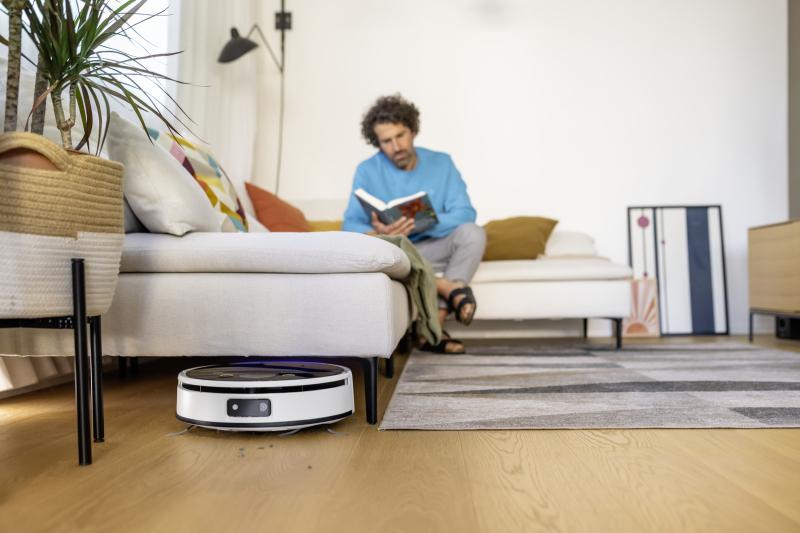 Samostojno sesanje in brisanje podlage: RVF 7 z lahkoto čisti trda tla in preproge z nizkim vlaknom. Majhnim oviram se z lahkoto izognete zahvaljujoč kameri in umetni inteligenci.