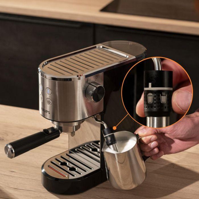 Kavni espresso aparat Krups XP444C10 Virtuoso s črpalko ponuja popolno izkušnjo priprave espressa v elegantnem, kompaktnem okvirju iz nerjavečega jekla.