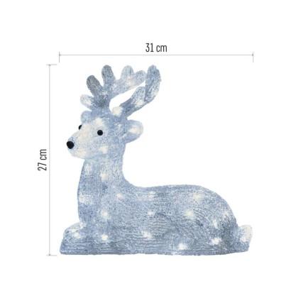 LED božični jelenček, 27 cm, zunanji in notranji, hladna bela, časovnik