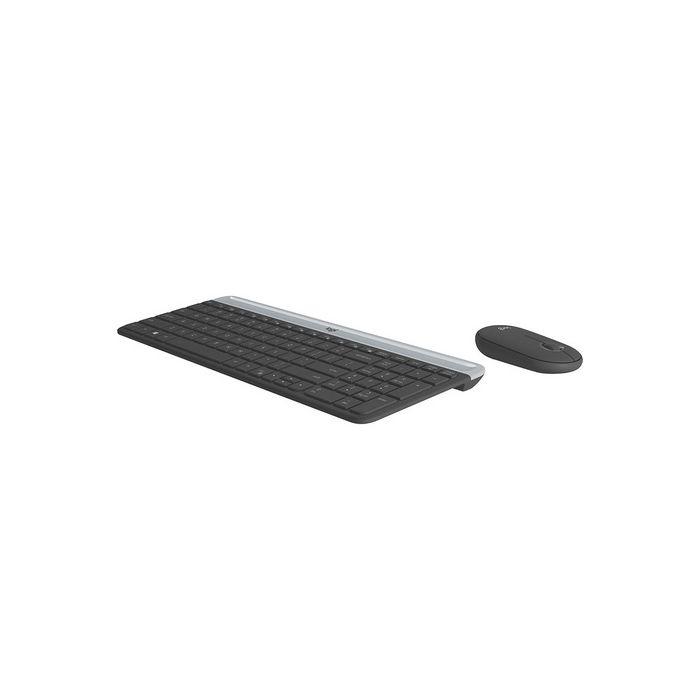 LOGITECH MK470 Slim Combo brezžična grafitna tipkovnica + miška: komplet kompaktne tipkovnice in miške, ki se ponaša z minimalističnim, modernim izgledom in tihim delovanjem. Enostavno ju povež ete prek majhnega sprejemnika USB-A in že deluje. Tipkovnica ponuja izjemno udobno tipkanje, miška pa se zahvaljujoč premišljeni obliki prilega vsaki roki.