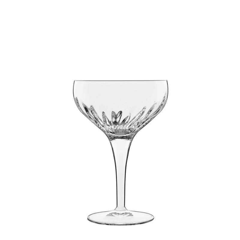 6-delna garnitura elegantnih kelihov Cocktail iz linije MIXOLOGY blagovne znamke Luigi Bormioli je idealna za postrežbo šampanjca in najrazličnejših koktajlov. Nevsiljiv reliefni vzorec čaše vas bo zagotovo očaral, saj ustvarja enostaven, trendovski, vintage pridih, hkrati pa je to izviren dodatek h kreativnosti in raznolikosti pri serviranju alkoholnih pijač. Pecelj kelihov je dodatno okrepljen s patentirano obdelavo proti obrabi, ki ojača stekleno površino s titanom, s čimer nudi trajno zaščito pred odrgnjenjem in občutno zmanjša krhkost stekla med vsakodnevno uporabo (tudi v pomivalnem stroju). Visokotehnološko pihano steklo SON.hyx poleg omenjene odpornosti daje kozarcem posebno čistost, popolno prozornost in bleščeč sijaj.Linija MIXOLOGY ponuja skrbno izbran luksuzni barski program za najboljšo pripravo in postrežbo mešanih pijač s poudarkom na koktajlih. Mixology so razvili italijanski steklarski mojstri hiše Luigi Bormioli v sodelovanju z futurističnim »miksologom« Yurijem Gleminijem. To sodelovanje se je izkazalo kot odlična kombinacija novih elementov, strokovnega znanja, ustvarjalnosti in umetniškega izražanja, kjer nič ni prepuščeno naključju.