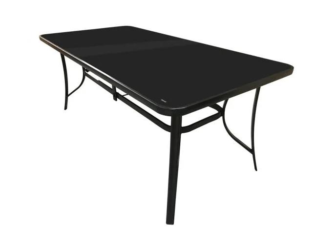 Kovinska miza s kaljenim črnim steklom. Debelina stekla 5 mm. Mere(d/š/v): 180x90x71 cm.
