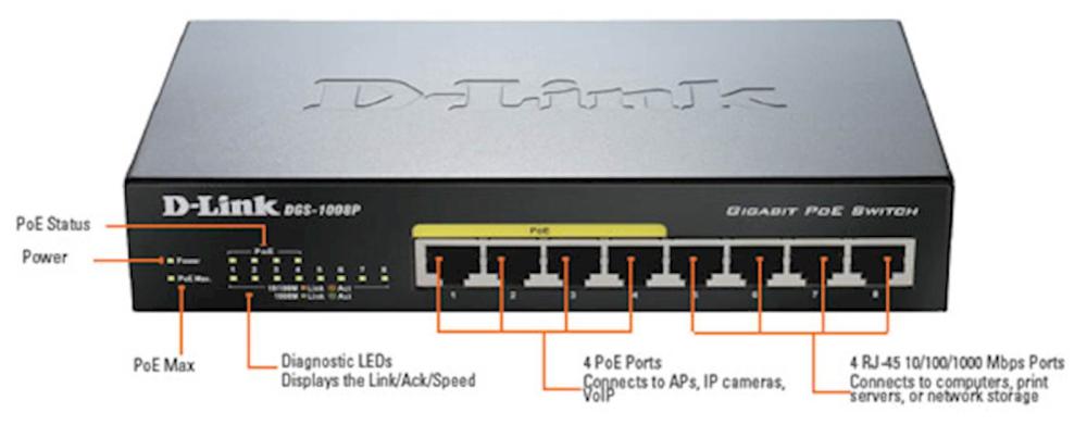 D-Link DGS-1008P 8-portno gigabitno neprekinjeno namizno stikalo omogoča domačim in pisarniškim uporabnikom preprosto povezavo in napajanje za naprave z napajanjem prek Ethernet (PoE), kot so brezžične dostopne točke (AP), IP kamere in IP telefoni. Omogoča tudi dodajanje dodatnih naprav Ethernet, kot so računalniki, tiskalniki in omrežno shranjeno shranjevanje (NAS) v omrežje. Ta kompaktni stikalo PoE deluje tiho, zato je idealen za uporabo v skoraj vsakem prostoru ali pisarni.