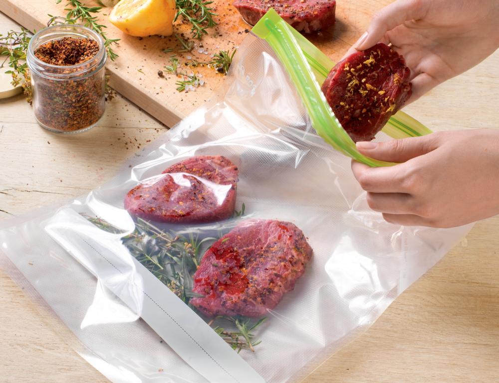 - Sous-vide: Vrečke z zadrgo za vakuumsko zapiranje so primerne za kuhanje sous-vide do 85°C.