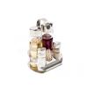 EVA 5-DELNI NAMIZNI SET Z DRŽALOM sestavljata 2 steklenici za olje in kis s pokrovom iz nerjavečega jekla 18/8, ki je odporen proti rji, 2 steklena stresalnika za sol in poper s pokrovom iz nerjavečega jekla in steklena posoda za zobotrebce.