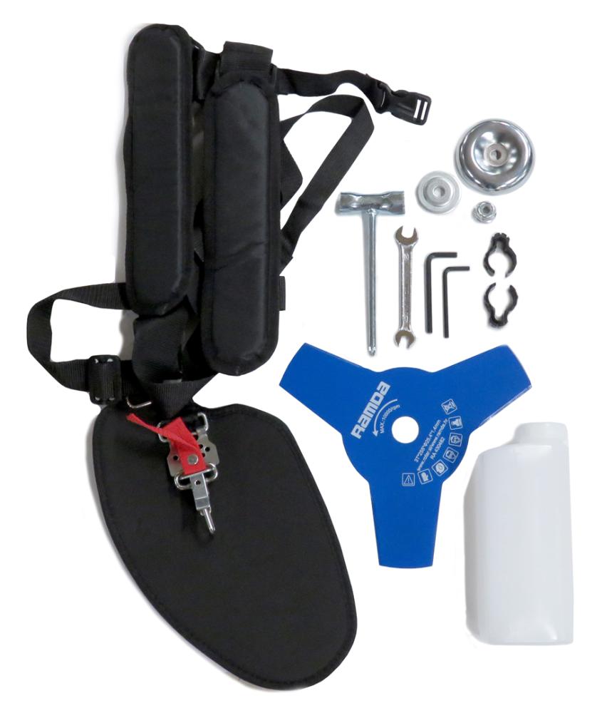 Motorna kosa RAMDA, polprofesionalna, z ravno deljivo gredjo in dvoročnim ročajem.