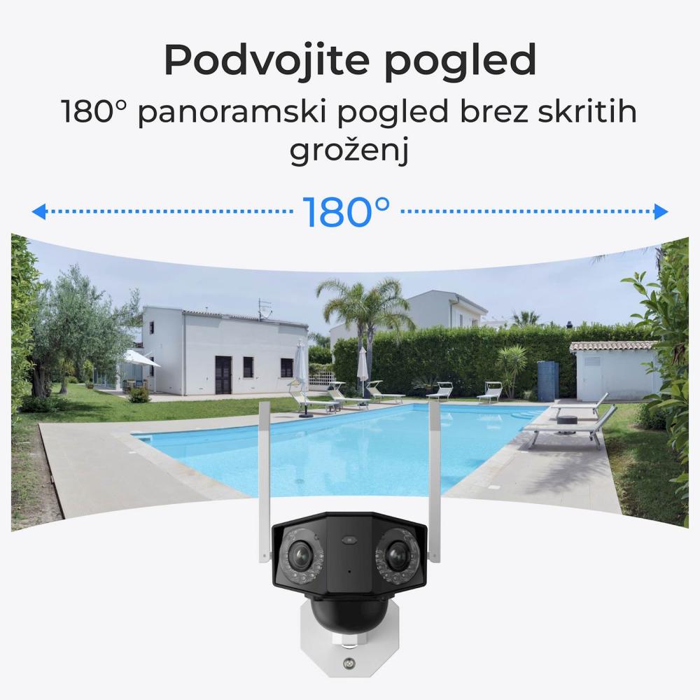 Tip kamere dodatno: Dvojna leča 180° Panorama, vidno polje:Vodoravno: 180° Navpično: 55°
