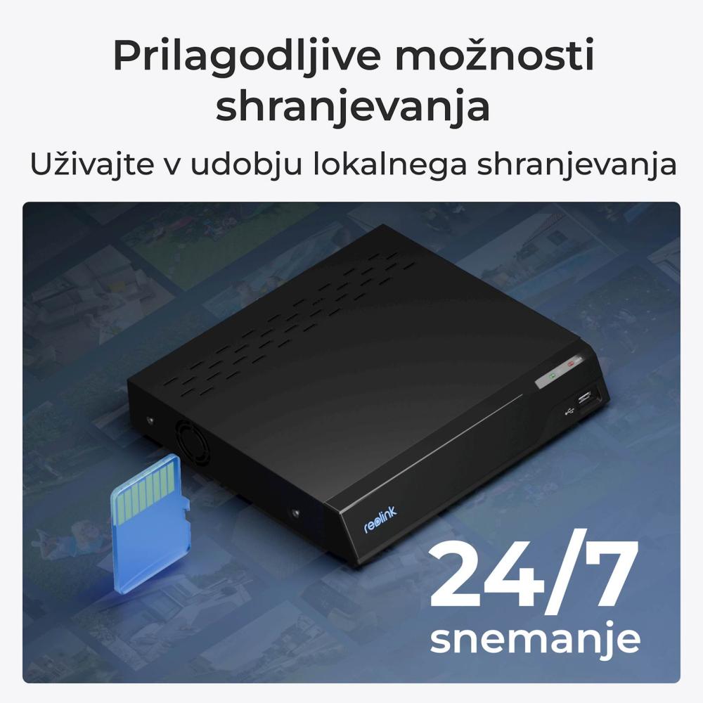 | Shranjevanje posnetkov: | podpira 24/7 neprekinjeno snemanje,na kartico microSD, Reolink NVR ali FTP strežnik. |