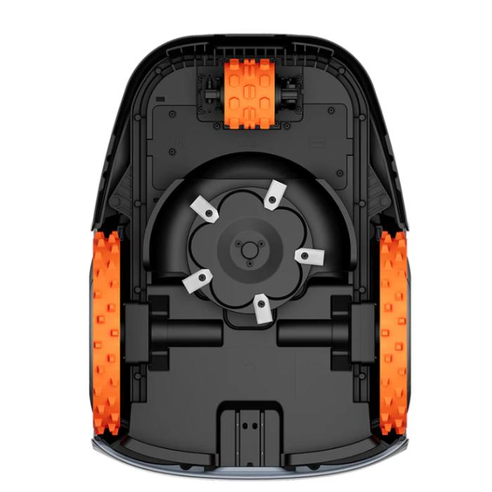Moč in stabilnost sta zagotovljeni z AWD pogonom ter avtomobilske stopnje sistema za nadzor stabilnosti (ESC), ki samodejno prilagaja obnašanje koles glede na teren. To pomeni, da robot ohranja trakcijo in stabilnost tudi pri naklonih do 45 % (24 °), na mokrih ali koreninastih površinah ter ob prehodih čez neenakomerno zemljo. Zero-turn tretje vodilno kolo omogoča natančne obračanje in manevriranje, ne da bi pri tem poškodoval travo ali pustil sledu.