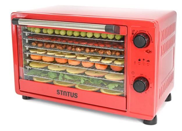 Kovinsko ohišje ter osem pladnjev za sušenje večjih in manjših živil zagotavljajo optimalen proces sušenja s čim manj porabljene energije; brez nevarnosti, da bi se kaj vnelo kot pri plastičnih sušilnikih. Statusov sušilnik ima bočni ventilator, ki omogoča horizontalno pihanje zraka, zato je dovolj, da med sušenjem (če ocenite, da je potrebno) obrnete pladnje. Ni pa jih potrebno prestavljati po višini kot pri okroglih sušilnikih, kjer zrak piha od zgoraj proti dol ali obratno.