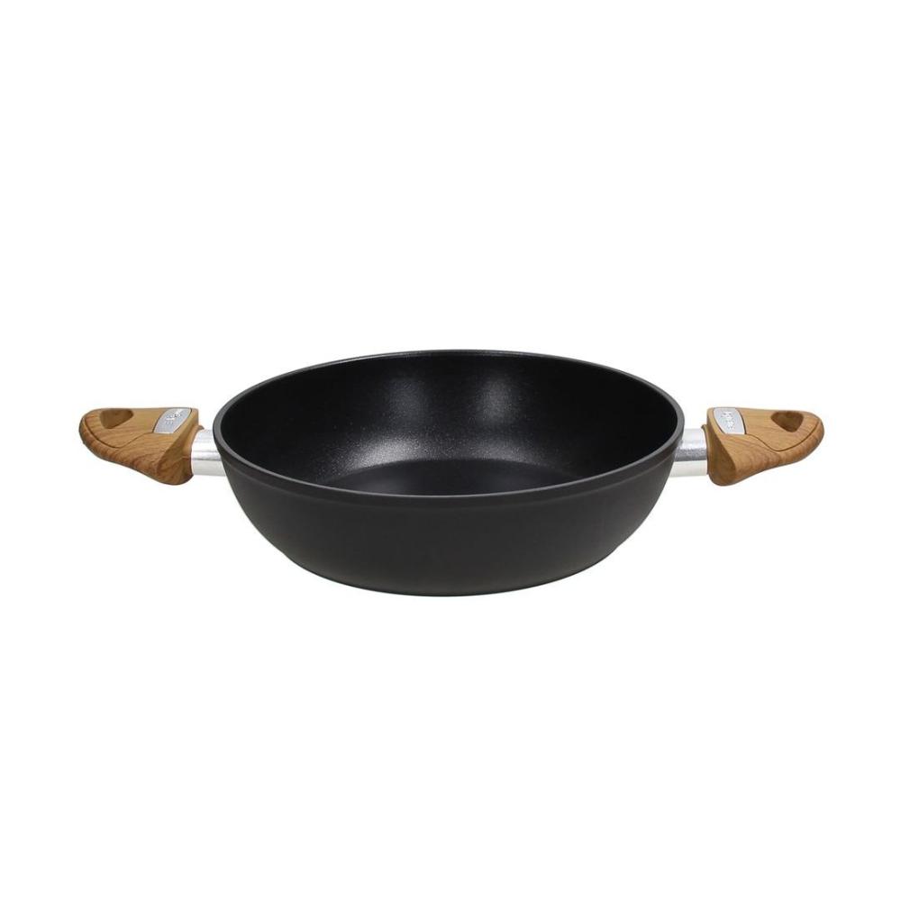 Ponev Tognana COUNTRY CHIC z dvema ročajema je izdelana iz stiskanega aluminija z inovativno notranjo prevleko, ojačano z diamantnim prahom in tehnologijo 'longlife diamond tech', ki materialu omogoča dolgotrajno obstojnost in odpornost pred obrabo. Kuhanje v takšni ponvi je enostavno, hrana pa se tudi brez dodajanja maščob ne sprijema. Premer ponve meri 24 cm, visoka pa je 6,5 cm. Odebeljeno dno meri 3,5 cm, debelina sten pa znaša 2,5 cm. Ponev z minimalističnim dizajnom je, zahvaljujoč zunanji prevleki X-Black, odporni na visoke temperature in mehkim 'soft touch' ročajem v imitaciji lesa, sodobnega videza in vsestransko uporabna. Primerna je za vse kuhalne površine, vključno z indukcijo. Ravno tako je primerna za pranje v pomivalnem stroju.