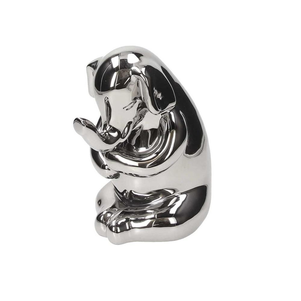 Srebrn keramični dekorativni kipec z motivom slončka višine 16 cm je lahko lep okrasni element v vašem domu ali delovni mizi. Primeren je tudi kot darilo.