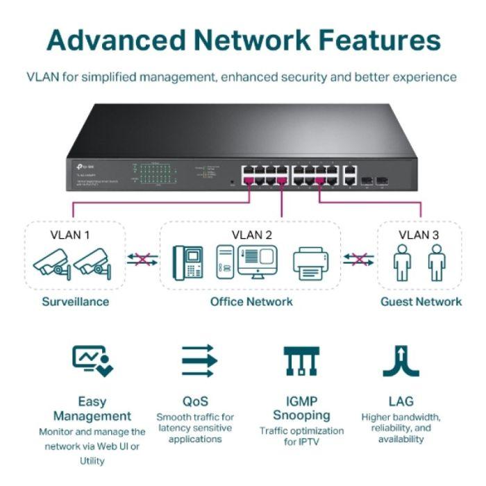 TL-SG1218MPE ponuja mrežni nadzor uporabnikom, da opazujejo vedenje v prometu. TL-SG1218MPE s spletnim uporabniškim vmesnikom in orodjem za upravljanje ponuja številne uporabne funkcije, vključno z nadzorom omrežja, določanjem prednosti prometa in izboljšanim QoS-om.