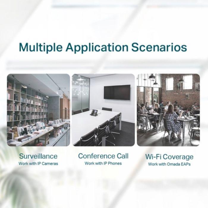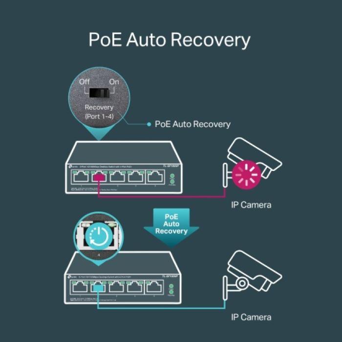 TP-LINK TL-SF1005P 5-Port PoE namizno stikalo-switch zagotavlja enostavno in hitro omrežno povezavo in enostavno postavitev IP kamer, IP telefonov, dostopnih točk ...