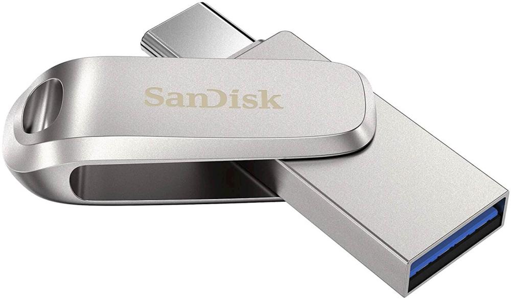 SanDisk USB C & USB DISK 128GB Ultra Dual LUXE, 3.1, srebrn, kovinski, branje do 150MB/s