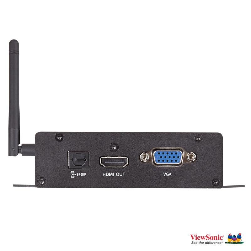 VIEWSONIC NMP-580W multimedijski predvajalnik ponuja zanesljivo in osupljivo predvajanje večpredstavnostnih datotek 1080p na zaslonih velikega formata in drugih digitalnih rešitvah. Z vgrajeno brezžično povezavo in RJ45 povezljivostjo, skupaj s programsko opremo Signage Manager, NMP-580W omogoča enostavno izdelavo, načrtovanje in nalaganje prilagojenih večpredstavnostnih vsebin na prikazovalnike iz osebnih računalnikov ali prenosnih rač unalnikov. Vgrajenih 8 GB pomnilnika ter USB priključek in mikro SD reža omogočajo neposredno predvajanje vsebine visoke ločljivosti. NMP-580W podpira tudi najnovejše standarde HTML5 in SMIL, ki strankam zagotavljajo dinamična in informativna sporočila. Vgrajena funkcija "fail-safe" omogoča povezanemu zaslonu nadaljevanje predvajanja vnaprej dodeljene večpredstavnostne vsebine, tudi če medijski predvajalnik ne deluje. NMP-580W ponuja zanesljivo rešitev za posredovanje informacij v prodajnih okoljih, v izobraževanju, hotelirstvu ...