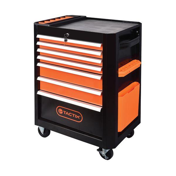 V celoti iz pločevine, sedem predalov z uležajenimi vodili, na vrhu zaščitna podloga in odlagalna mesta s pregradami, s strani privijačen ročaj za vlečenje, koš in obešalo z izvrtinami, cilindrična ključavnica za centralno zaklepanje z dvema ključema, dva fiksna in dva vrtljiva kolesa z zavoro.