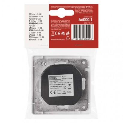 izdelek: vtičnica enojna z bočna zaščitnim kontaktom in USB izhodom 2,1 A max.