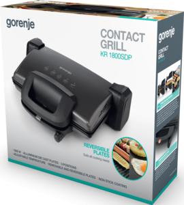 Kontaktni žar Gorenje KR1800SDP z močjo 1800W ima odstranljivi obojestranski plošči, ki sta premazani proti oprijemanju hrane.