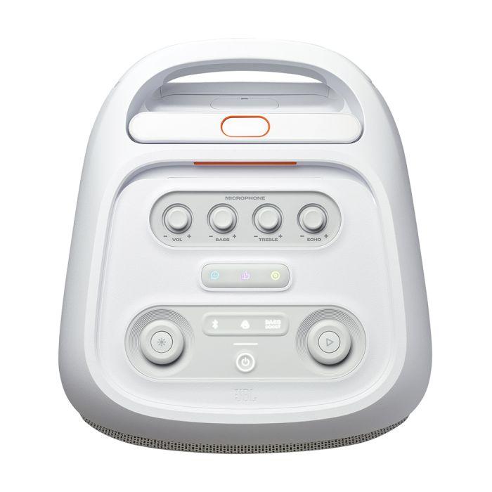 Poiščite močan JBL Pro zvok iz dveh 6,5-palčnih nizkotoncev, ki zagotavljajo čist, natančen in globok bas, tudi pri najvišji glasnosti, ter para 25-milimetrskih visokotoncev, ki ustvarjata kristalno čiste visoke tone. Ne glede na to, ali ste znotraj ali zunaj, lahko s glasbo napolnite prostor velikosti teniškega igrišča.