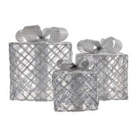 LED svečnik srebrn, 28,5 cm, 3x AA, notranji, topla bela, časovnik